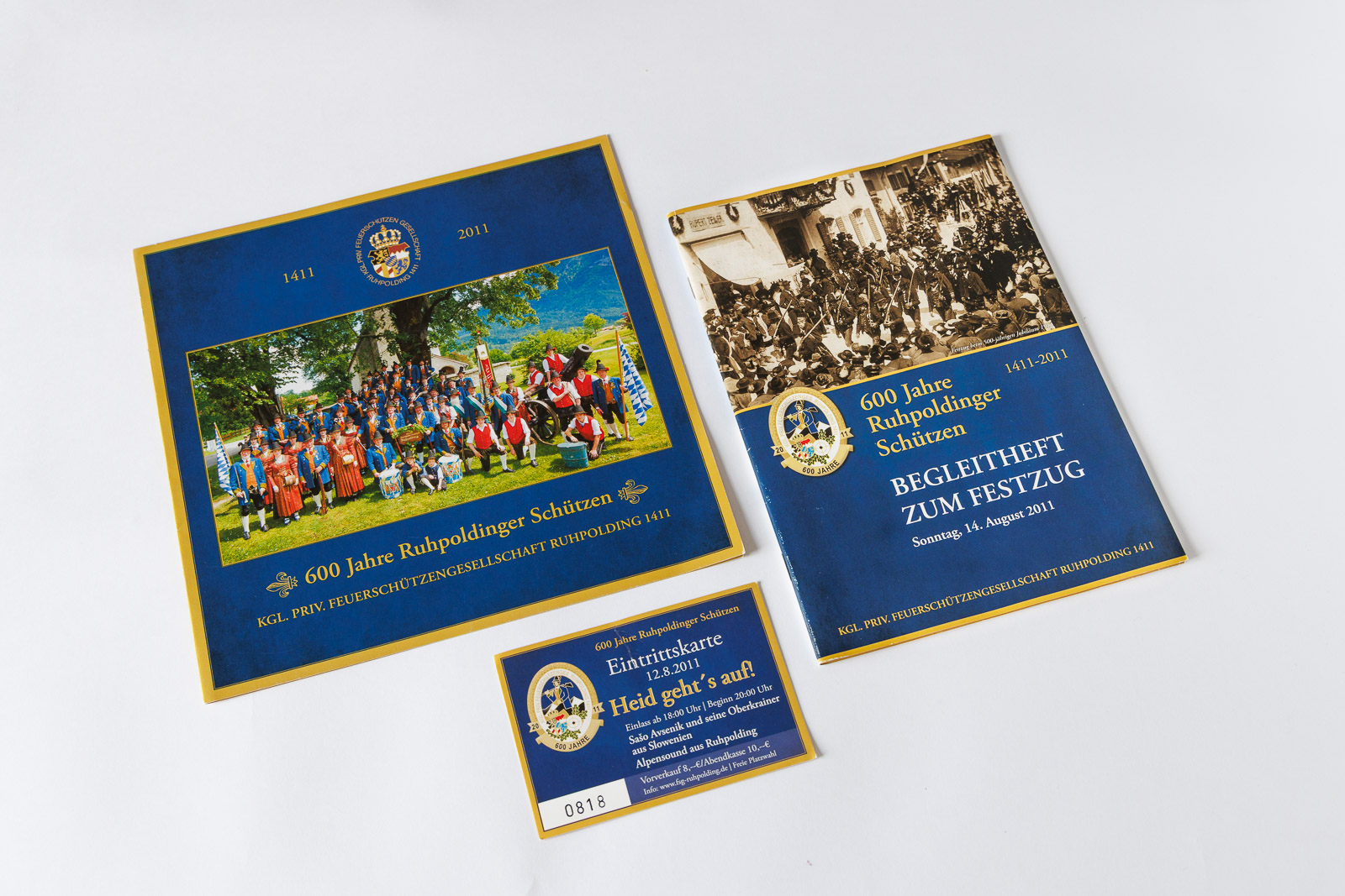 Broschüren, Eintrittskarten, Banner, Werbematerial, usw. Fotografien